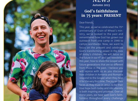 This year, as we’ve celebrated the 75th anniversary of Grain of Wheat’s ministry, we’ve looked to the past and remembered how God has grown our outreach from one camp in 1948 to camps worldwide. Now, we want to focus on the present and celebrate God’s transforming power in the lives of today’s children. We will focus on the future in our 4th and last newsletter this year; how to share the Gospel with future generations that are so different from those in the past. I believe you will rejoice with us as you discover how children in Armenia and Romania respond to the Gospel when they hear it for the very first time. The joy on their faces as they trust in Jesus to be their true hope both today and into eternity is both inspiring and priceless. Over all these years, we have seen God’s faithfulness throughout every challenge we’ve faced. Because of this, we can move into the future,